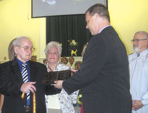 Jack Gregory, left, was named deacon emeritus at Coronaca Baptist Church, Greenwood, on April 13. He served the church as a deacon for more than 30 years. Pictured are Gregory, his wife Betty, pastor Todd Polatty, and chairman of deacons Pete Snelling.