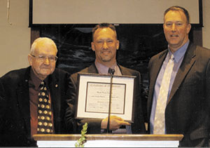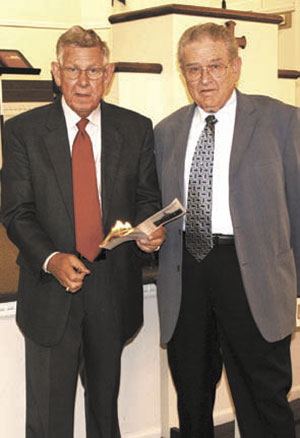 Brandon Corley, left, was ordained to the ministry March 29 by South Greenville Baptist Church, Pelzer, where he has accepted the call as associate pastor. Presenting the certificate of ordination is pastor Louis Hart. Corley was also given a Bible on behalf of the church.