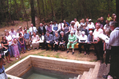More than 300 people were in attendance for the anniversary celebration. Members and guests met under a brush arbor for a reenactment of the first worship service. Everyone then met across the road at the old Richland Creek School as memories were shared about the history of education in the community. Everyone then assembled at the restored outdoor baptismal pool for an old-fashioned baptism service. The homecoming sermon was delivered by pastor Steve Jones.