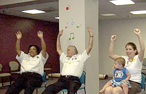 Participants do gentle stretching and breathing exercises to warm up, and then they enjoy laughter exercises with the group. After cool-down exercises, they learn about Good Hearted Living, which teaches people how to bring more fun into their lives and prevents “hardening of the attitudes.”