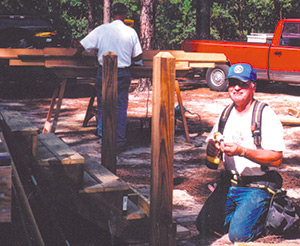 Volunteers make repairs to an outdoor chapel at Pinehill Baptist Retreat.The volunteers built picnic tables, upgraded bathroom facilities and enhanced the outdoor chapel at the 48-year-old camp, which is owned by Pee Dee Baptist Association but is available for use by churches from other associations.