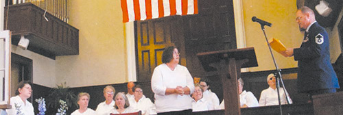 More than 150 people attended a Veterans Day service at Denmark First Baptist Church. The flag was presented by James Polasky, U.S. Air Force, retired. Other participants included pastor Andy Hunter, along with several other active and retired military service members. Robert Tilly, a U.S. Navy physician, delivered the morning message. Sandra Scott recognized all veterans in the congregation and presented a veterans plaque, signifying a stained glass window in the church dedicated to those who have served in the military.