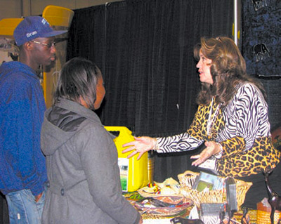 Taylors First Baptist Church recently held a “Face of Missions” expo. A volunteer speaks to visitors about the True Love Waits campaign and other ministries being done in Arua, Uganda. (Photo by Rachel Ham.)