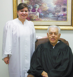 Jane Purvis was recognized by First Baptist Church, Florence, on Feb. 7 for 64 years of service. Since 1946, she has worked with the WMU, Sunday school, and media library. Pictured with Purvis is pastor Daniel Inabinet.