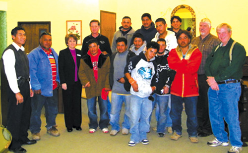 The residents and staff of Martha Franks Retirement Community recently took an interest in a roofing crew at the Laurens campus. The Hispanic roofing team from Mays Contracting Co. of Newberry withstood the cold and wind, sometimes even singing as they nailed shingles. Resident and Gideon representative Allison Pugh suggested to executive director Dina Hair that the men be invited in for a meal. Through the combined efforts of Hair, Laurens Baptist Association director of missions Reiny Koschel and Hispanic pastor Cirilio Sanchez, the men enjoyed a meal and a message in the dining room and were presented Bibles.