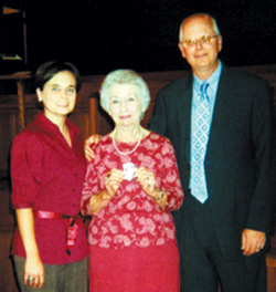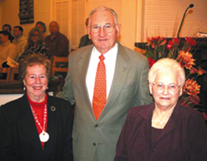 Doris Hogan, center, was honored recently by Pacolet Mills Baptist Church, Spartanburg County Baptist Network, for 34 years of perfect Sunday school attendance. Pictured with Hogan is Karen Crossley, Sunday school director, and Norman Band, pastor.