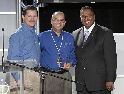 Presenting the award to Samuel Rodriguez (center) was Ken Weathersby (right), vice president of church planting for NAMB, and Van Kicklighter, NAMB’s church-planting team leader for strategic planning and people groups.Rodriguez is a church-planting strategist with the South Carolina Baptist Convention. He helped plant seven new Hispanic churches and one multiethnic church in South Carolina last year. In 2010, his goal is to see 15 new churches planted – 10 Hispanic and five other-language congregations.