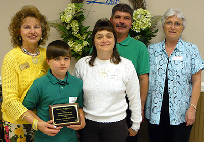 Polly Davis (far left) presents the Church Group Volunteer of the Year award to members of First Calvary Baptist Church of Leesville. Representing First Calvary, from left: Joshua Hancock, Sonya Hancock, Chris Hancock and Janet Hancock.