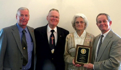 Welcome Baptist Church, Beaverdam Association, recently honored Annie Bell Canupp, who has been a member there since 1951. She has attended Welcome since childhood, and remains actively involved in Sunday school. The Pelfrey Bible Class held a lunch in her honor, and the congregation presented her with a plaque, gift cards, and a proclamation naming March 28 as Annie Bell Canupp Day. Pictured from left are Billy Murray, John Mc-Knight, Canupp, and pastor Jerry Lyles.