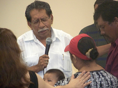 Mario Vargas prays with 29 people who received Christ on Fiesta Night.