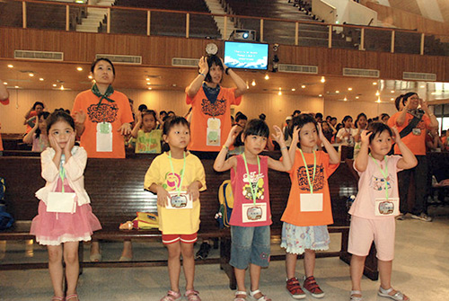 Churches submitted 144 photos to the contest, and Grace Baptist Church in Taiwan won the prize – a VBS Super Sampler. The picture shows young children doing their motions as part of the day’s worship rally.
