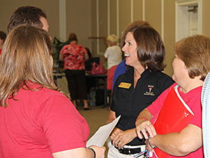 NGU’s Keli Sewell greets new student Jesse Nugent and her parents Tim and Penni Nugent. Nugent is pastor of East Gaffney Baptist Church.Campus housing is near capacity with 1,479 resident students this semester.