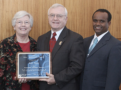 The Christian Life and Public Affairs Committee of the South Carolina Baptist Convention recognized Fred Payne with the 2010 E.A. McDowell Award during the Wednesday morning session of the SCBC annual meeting in Columbia.