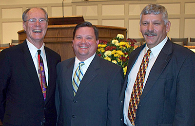 The 208th annual session of the Saluda Baptist Association was held Oct. 21 at Neal’s Creek Baptist Church in Anderson. The assembly voted to elect 2010-2011 officers: Wesley Taylor (right) of Barker’s Creek Baptist Church as moderator, and Alex Henderson (center) of Neal’s Creek Baptist Church as vice moderator. Bill Rigsby (left), pastor of North Anderson Baptist Church and outgoing moderator, presided. Broadus Moody, director of missions for Piedmont Association, served as parliamentarian. The program included music by Joyful Sound of North Greenville University and by singers and choirs from area churches.