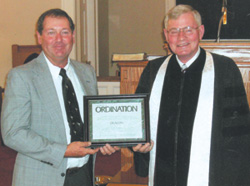 First Baptist Church, Lynchburg, ordained Watson M. Tolson II, left, as deacon on Oct. 3. Pictured with Tolson is pastor Rusty Wilson.