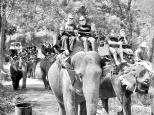 North Greenville University students ride elephants in Thailand.