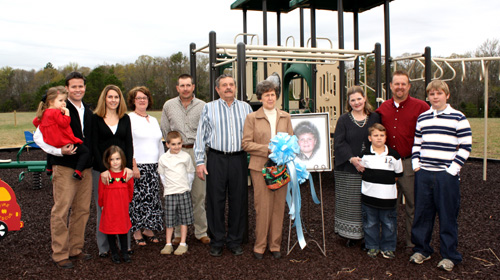 Mt. Bethel Church, Belton, dedicated a playground on March 20 in memory of Troy Mattison, who passed away due to a tragic accident on April 8, 2007. A playground fund was started by the children of Mt. Bethel, and with the help of many others the playground became a reality. Pictured at the dedication are members of the Mattison family: Bryan, Millie Kate, Sheila and Mattie Grace Goodwin; Leighann, Levi and Brian Mattison (uncles, aunts and cousins); Ronnie and Lucille Mattison (grandparents); Lisa and Scotty Mattison (parents); and Ryan and Clint Mattison (brothers).