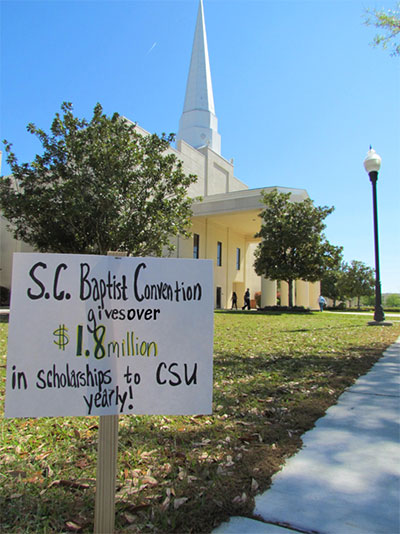 On April 6, more than 300 students at Charleston Southern University signed a banner with notes of appreciation for the school’s various donors. CSU students received nearly $15 million in scholarship and grant support in the 2010-2011 academic year. Of that amount, more than $1.8 million came from the South Carolina Baptist Convention’s Cooperative Program. On average, 36 percent of a student’s tuition is covered with scholarship and grant funding, which means, statistically, starting in early February, tuition for the student is paid until the end of the school year through gifts and grants.