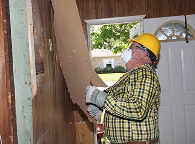 Ken Higgins of Spartanburg removes water-damaged paneling.