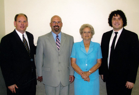 Pine Level Church, Early Branch, recently honored Dot Cope on her 55th anniversary as music director. Pictured from left are former pastor Rich Wilson, current pastor Kyle Waddell, Cope, and guest soloist Daniel Crews.