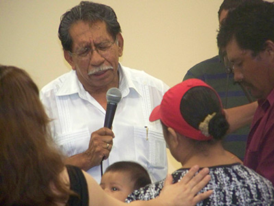 Mario Vargas prays with 29 people who received Christ on Fiesta Night.Savannah River Association church members have sponsored the summer ministry for the last 47 years. There were 74 professions of faith, and 29 of those were made during one worship time.