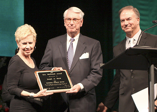 Joe Mack, the South Carolina Baptist Convention’s former director of the office of public policy, was awarded the annual E.A. McDowell Award for individual public service. Mack and his wife, Beverly, are members of Shandon Baptist Church, Columbia. The award was presented at the SCBC annual meeting by the convention’s Christian Life and Public Affairs Committee. Making the presentation is committee member Hal Lane.