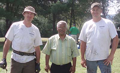 Tommy and David Richardson, bivocational pastors who own a roofing company, stand with the pastor of a church in Kentucky. The Richardson brothers took mission teams from their churches to put a new roof on the Kentucky church.