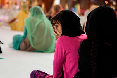 Sikh women pray and listen to scriptures recited in the main hall of London’s Sri Guru Singh Sabha Gurdwara. Visitors are welcome as long as they are modestly attired, remove their shoes and cover their heads. All sit on the floor, mostly cross-legged, and with their feet pointing away from the front.London best fit what they were looking for. Here they can connect with their people group by working in the communities where Central Asians live, by visiting local holding facilities for Central Asian refugees and by providing language help to immigrants learning to operate in an English-speaking environment.