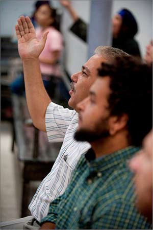 Christians in North Africa respond at the conclusion of a revival service.Tony was impressed with the large numbers of young people and families in the church. In the airport before his return, he struck up a conversation with a young woman who was the clerk in a souvenir shop. He asked her if he could give her a little booklet about what it means to be a Christian. She seemed to accept it gladly. A short time later, Tony saw a security guard approaching him with the gospel tract in his hand. His fear melted away when the guard told him that the young lady wanted him to sign the tract and to deliver a gift to Tony. “Young people are searching,” observed Marie (name changed), an International Mission Board employee. “They are open right now but could easily be led the other way.”