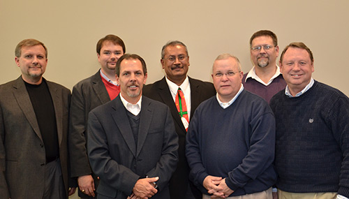 SCBC officers and committee chairmen for 2012: (front row, from left) Keith Davis, chairman; Tom Tucker, vice chairman; David Dinkins, administrative committee; (back row) Steve Cartin, budget, finance and audit committee; Benjamin Smoak, scholarship committee; Naveen Balakrishnan, planning and ministries committee; and Kent Smith, secretary. (Not pictured: Rick Caldwell, properties committee).Keith Davis, pastor of Zion Hill Baptist Church, Spartanburg, was elected to a second one-year term as chairman of the Executive Board. Tom Tucker, pastor of Sisk Memorial Baptist Church, Fort Mill, was reelected vice chairman; and Ken Smith, pastor of River Hills Baptist Church, Moore, was elected secretary.