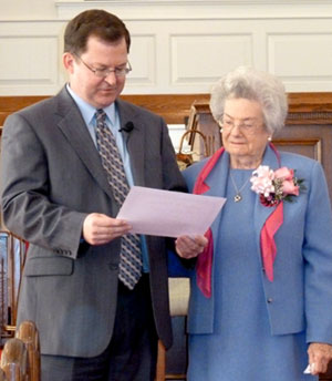 Cedar Grove Baptist Church, Kingstree, celebrated “Louisa Tyler Day” on Oct. 2, in honor of her 41 years of service as Sunday school secretary. Tyler, who celebrated her 90th birthday earlier in the week, received a certificate of appreciation and a gift, as well as a luncheon following the service. Pictured with Tyler is pastor Jay Johnson, who presented the certificate and gift on behalf of the congregation.