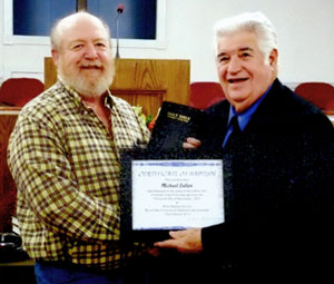 Michael Cullen, left, was baptized by pastor Harold Sanders on Nov. 13 at Wren Baptist Church, Piedmont.