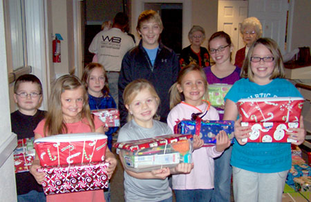 The children of Barker’s Creek Baptist Church, Honea Path, brought more than 100 boxes of toys and special treats to the front of the sanctuary on Nov. 13. The items were donated by church members to be sent to children around the world through Operation Christmas Child.