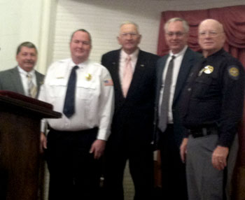 Padgett’s Creek Baptist Church, Union, held a special service on Oct. 30 to honor emergency personnel in the city and county of Union, as well as the Cross Keys fire department. Guest speakers included Sheriff David Taylor, police Chief Sam White of the City of Union, and reserve county deputy and fireman John Flood. Pictured at the event are Taylor, Flood, pastor Carrol Caldwell, White, and retired police Chief Russell Roark.