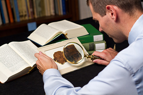 Ryan Stokes, assistant professor of Old Testament at Southwestern Seminary, shown here examining one of the seminary’s nine Dead Sea Scroll fragments, was part of a team of SWBTS scholars presenting their research at the Society of Biblical Literature’s mid-November meeting in San Francisco.“Southwestern’s scrolls contain readings of Old Testament passages that are nowhere else attested,” Ryan Stokes, assistant professor of Old Testament, noted after the SBL’s three-day mid-November meeting. “We are just beginning to comprehend their importance for the field, but we expect them to shed light on how we came to have the Old Testament text that we have today.”