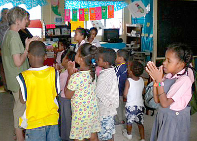 “Prayer guides this mission work,” said Walworth, shown leading the children in a time of prayer. “It is a blessing to be able to go to Belize and to do God’s work there.”“There’s so much we could learn about what’s really important,” Walworth said.
