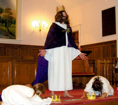 Reedy Creek Baptist Church, Marion, held an ingathering service for the Annie Armstrong Easter Offering on March 25. Pictured from left are Elizabeth Smoak, Michael Jenerette and Sydney Miller, who participated in a dramatic presentation prior to the ingathering.