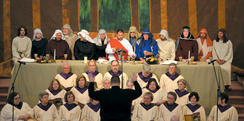First Baptist Church, Barnwell, recently presented a musical drama, “The Living Last Supper.” “It’s all based on what Jesus said the night of the last supper – that one of his disciples will betray him,” said Michael Pisacreta, music director for the event. Pictured are church members playing the parts of Jesus and the 12 disciples, along with the choir.