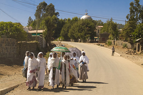 Girls of an Orthodox religious background in the Horn of Africa wear prayer shawls on their way to church. Large pockets of people in the region claim Orthodox Christianity as their religion but do not know the message of the gospel of Jesus Christ.