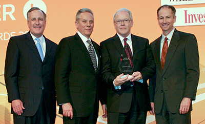GuideStone president O.S. Hawkins, chief operating officer John Jones and chief investment officer Roddy Cummins, along with Frank Page, president of the Southern Baptist Convention’s Executive Committee, were in New York City March 8 to receive the Lipper trophy at a dinner sponsored by The Wall Street Journal, Thomson Reuters and Investment News.