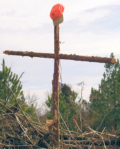 God gave him peace and assurance that January day in 2008. “I said, ‘OK, Lord, I am going to mark this spot.’ I cut down a cedar and made a cross out of it and stuck it in the ground. I had never done anything like that before in my life. I hung my dog whistle and my orange cap on it. It was so peaceful. I felt I had nailed it down and that the Lord was saying to me not to worry about it — He would take care of us.”