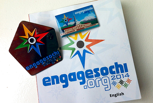 Marc Hooks, co-director of Engage Sochi, noted that a major part of the Engage Sochi strategy during the Olympics was to use specialized trading pins that facilitated sharing the Gospel.