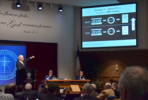 “In 1982, the average Southern Baptist church forwarded on 10.7 percent of its undesignated receipts to the Cooperative Program,” Page said. “But in 2012 it was down to 5.41 percent. It’s pretty much declined two-tenths of a percent every year.”