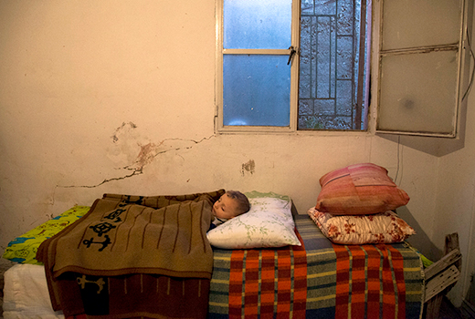 A Syrian child takes a nap in a rented home in northern Lebanon, where there are no official, government-backed refugee camps. Roughly half of the some 2 million refugees resulting from the Syrian civil war are children. (Photo by Joseph Rose)