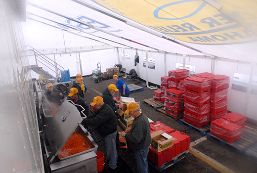 An Oklahoma Disaster Relief mobile kitchen prepared tens of thousands of meals in Middletown, N. J., following the devastation of Hurricane Sandy. (Photo by Laura Sikes/NAMB)