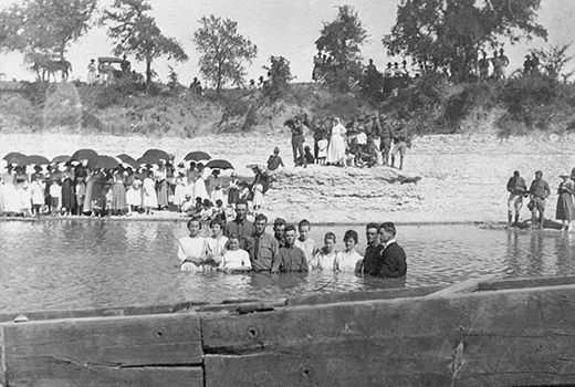 A minister baptizes WWI-era soldiers and others in the Trinity River at Camp Bowie in Fort Worth, Texas. (SBHLA photo)