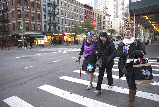 IMB missionary Gena Wilson (left) continued the race into the evening. Her mother, Betty Barton (center) and sister, Glenda Londono (right), both from Beaufort, South Carolina, walked part of the race with her, providing encouragement and support. (Photo by Paul W. Lee/IMB)