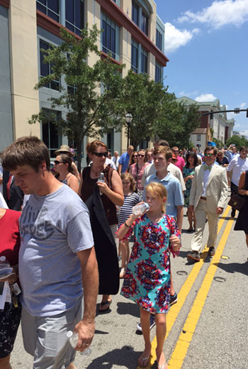 Three Southern Baptist churches in Charleston (Awaken, Journey and Centerpoint) suspended their regular Sunday services and joined together for worship in sweltering heat on Marion Square, conveying to Emanuel their love and support.