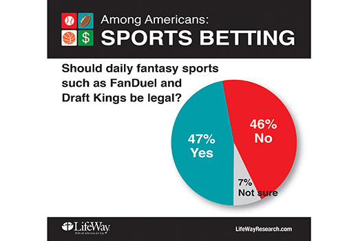 Opposition runs highest among religious Americans. Almost six in 10 with evangelical beliefs (58 percent) say sports betting should not be legalized throughout the country, and 57 percent believe daily fantasy sports should be illegal.