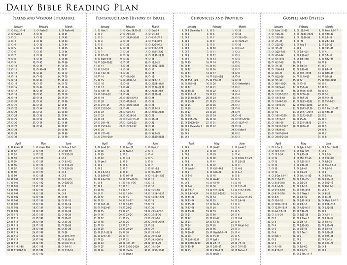 This daily Bible reading plan is provided courtesy of Crossway. July to December will be found in our July 2026 issue. (Note: Bible reading plan goes through the New Testament twice.)